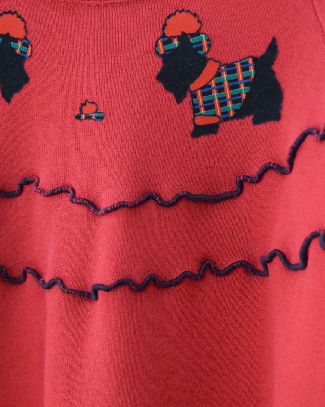 胸元から方にかけてのパイピング刺繍が特徴的なスウェット。