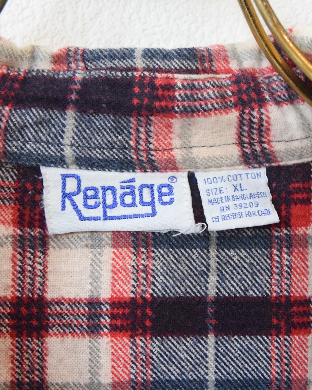 80~90年代頃のRepageのプリントネルシャツ。不良っぽ過ぎず、アメカジ過ぎもしない程よくいなたさのある絶妙なチェック柄です。