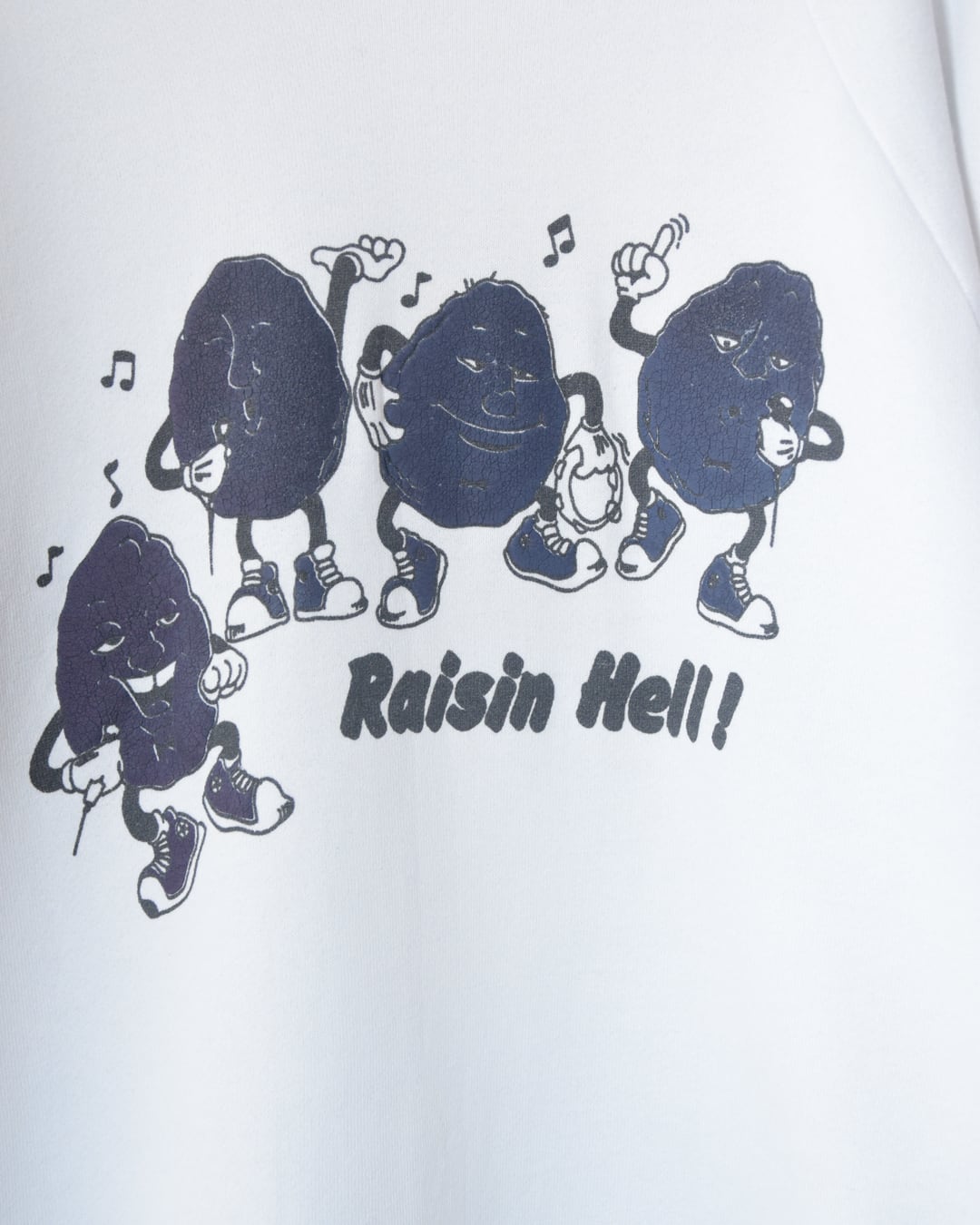 を掛けて、楽しく騒いでるレーズンたちがプリントされたデザインのスウェット。