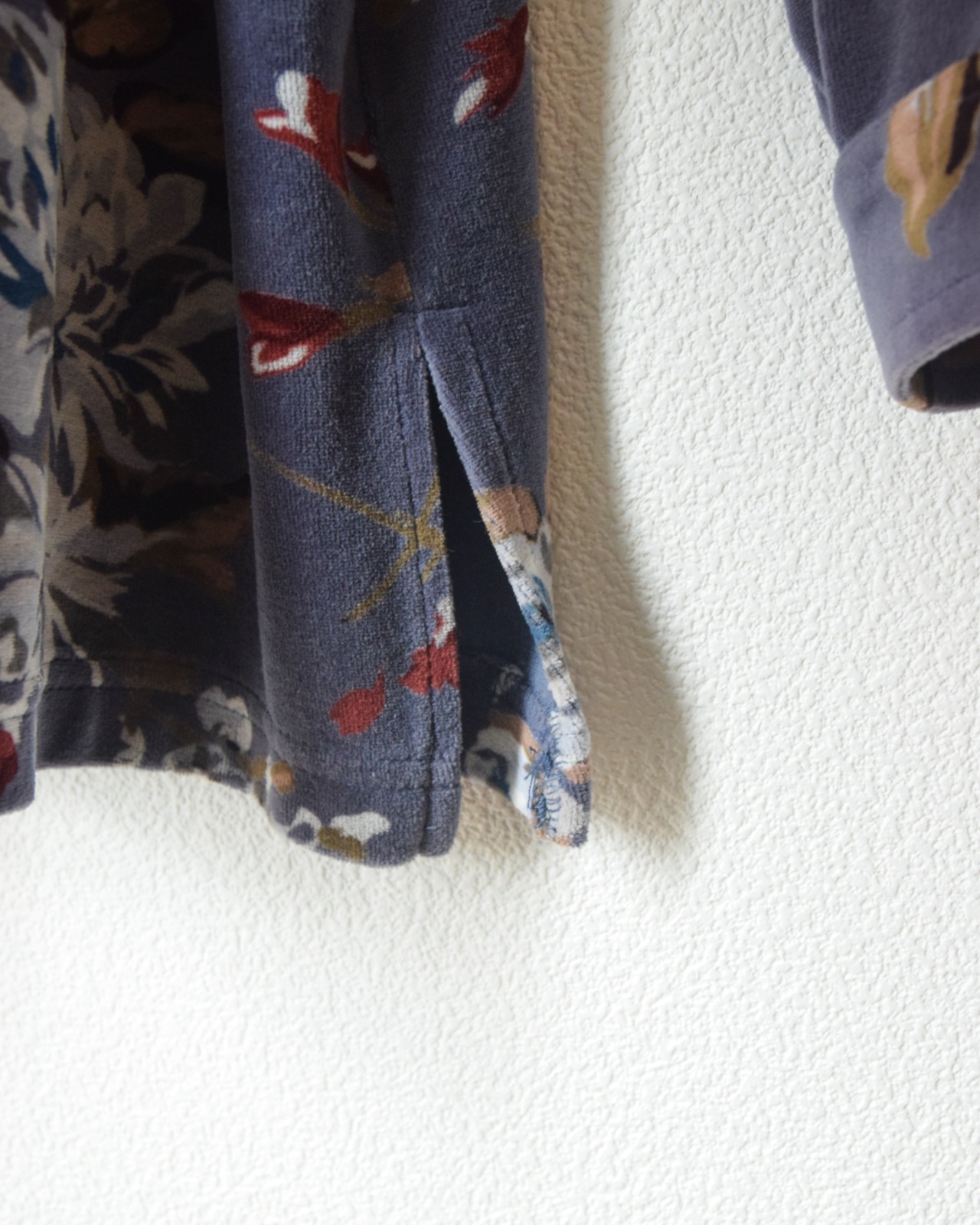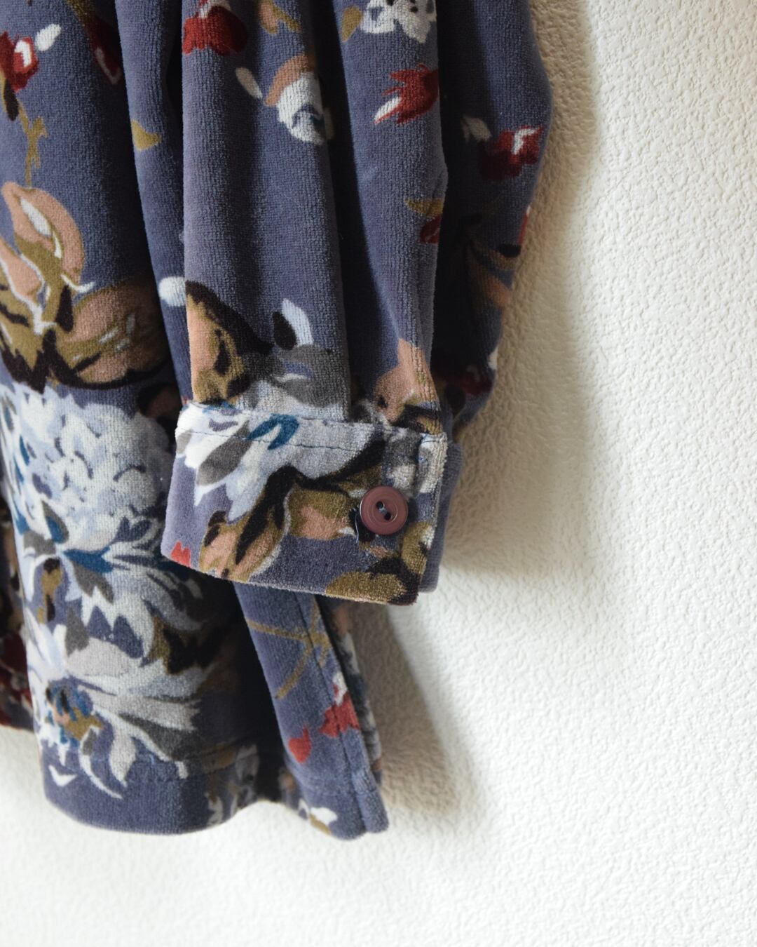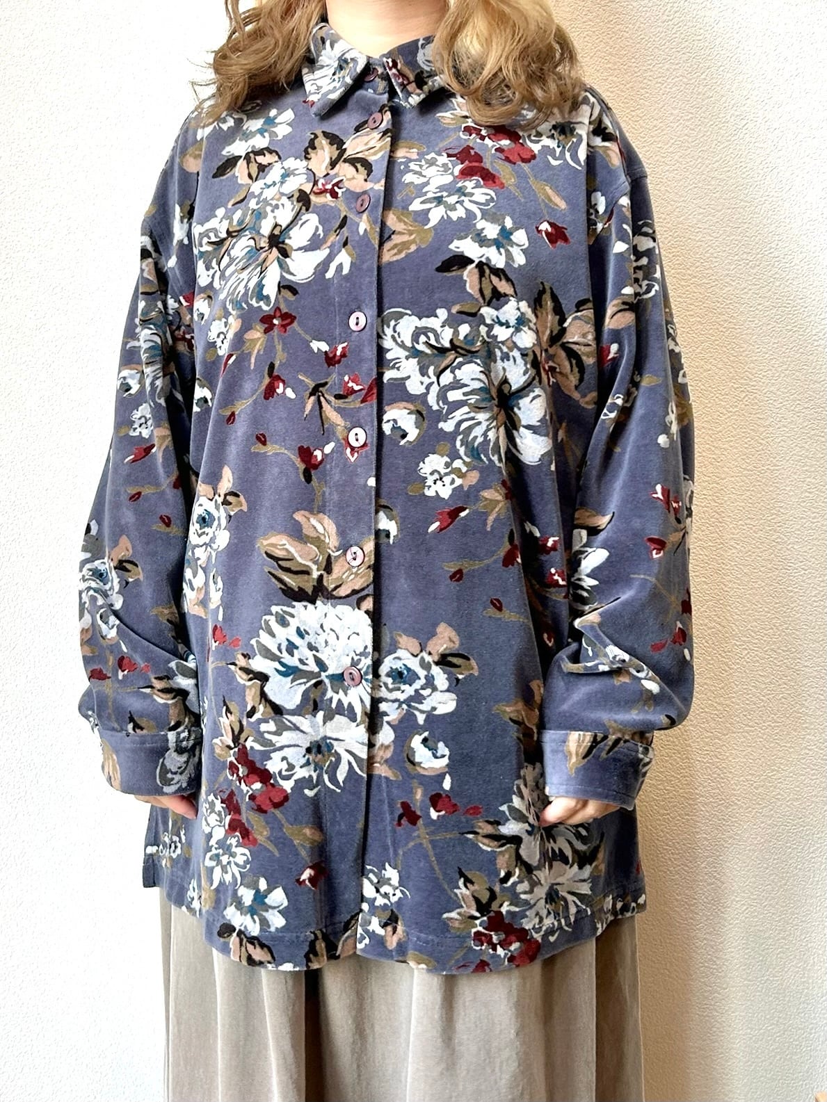 花柄ベロアシャツ。