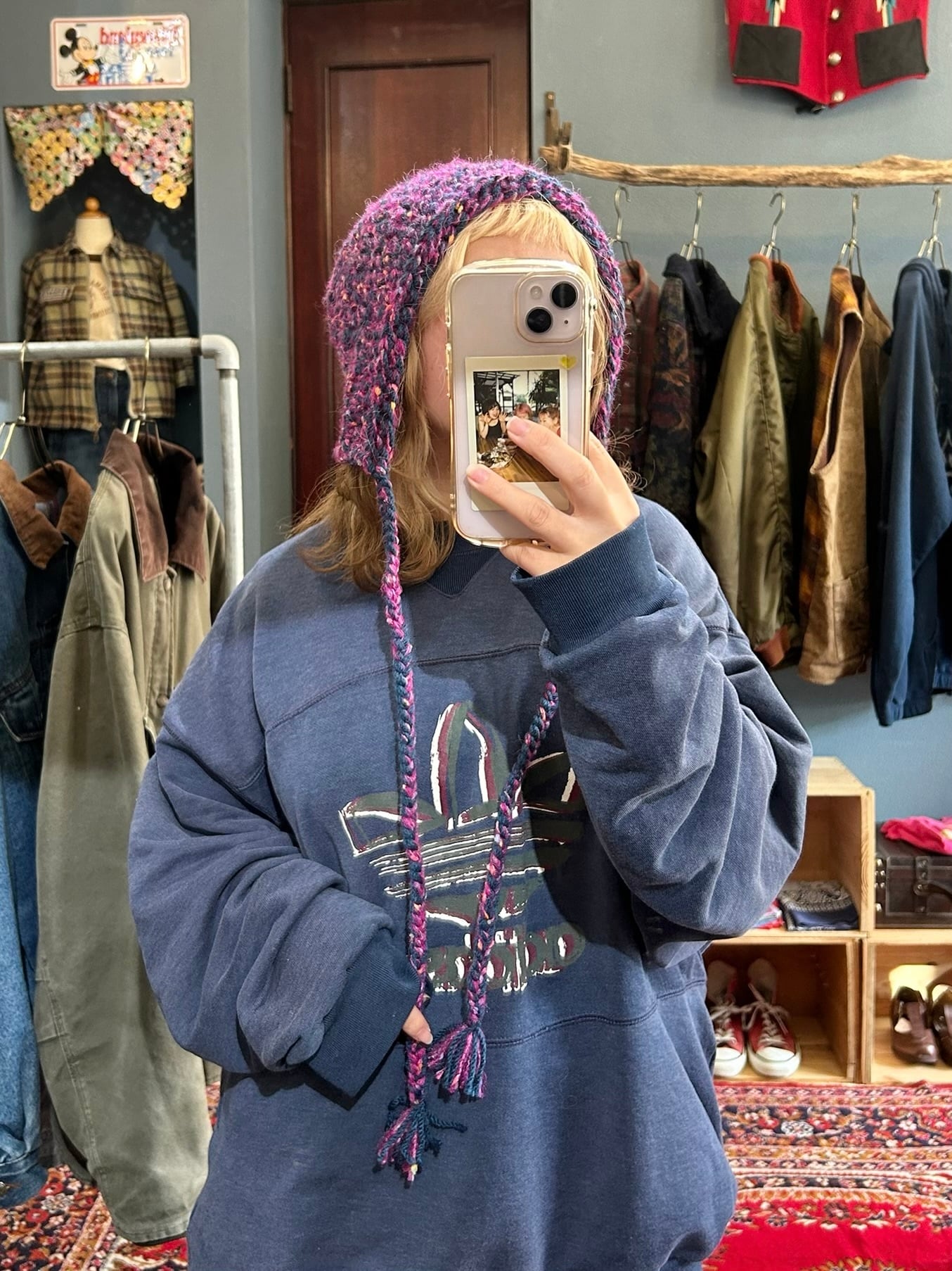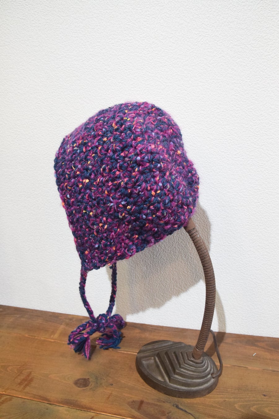 ネイビーとピンクにカラフルなプツプツ毛糸二本取り編み