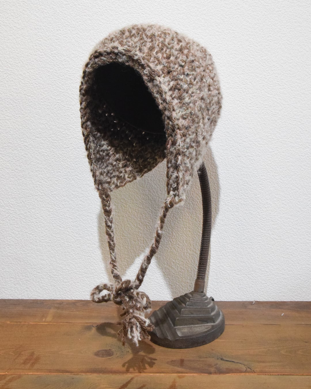 ブラウンとベージュのクルクル毛糸二本取り編み