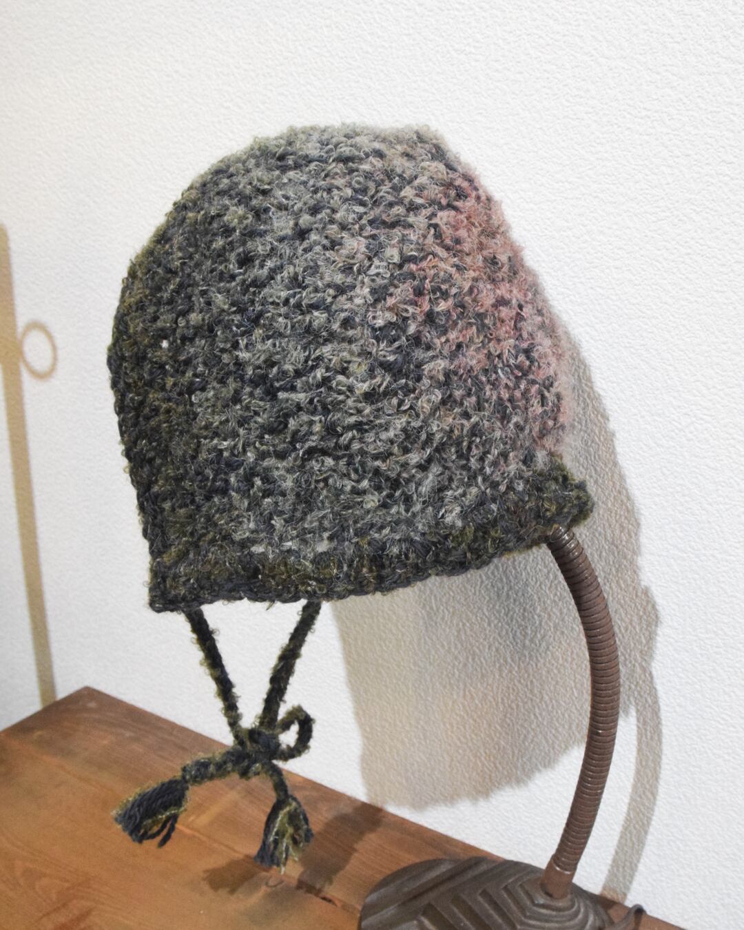 チャコールグレーとピンク、グリーングラデーション毛糸二本取り編み