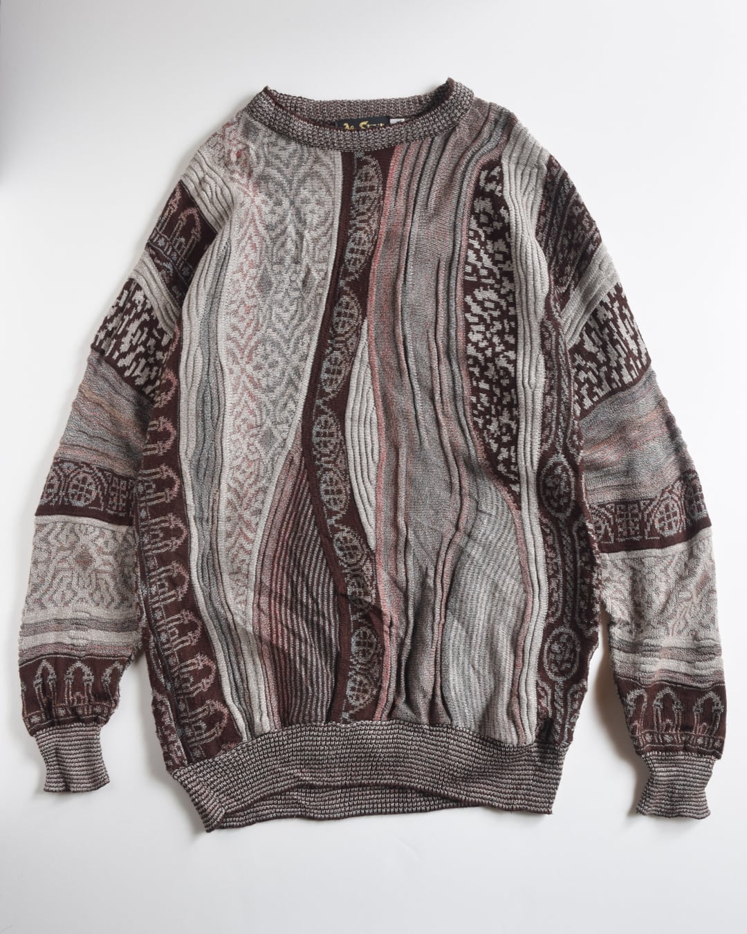 3Dデザインのニットの中でもコーディネートに取り入れやすい一着。