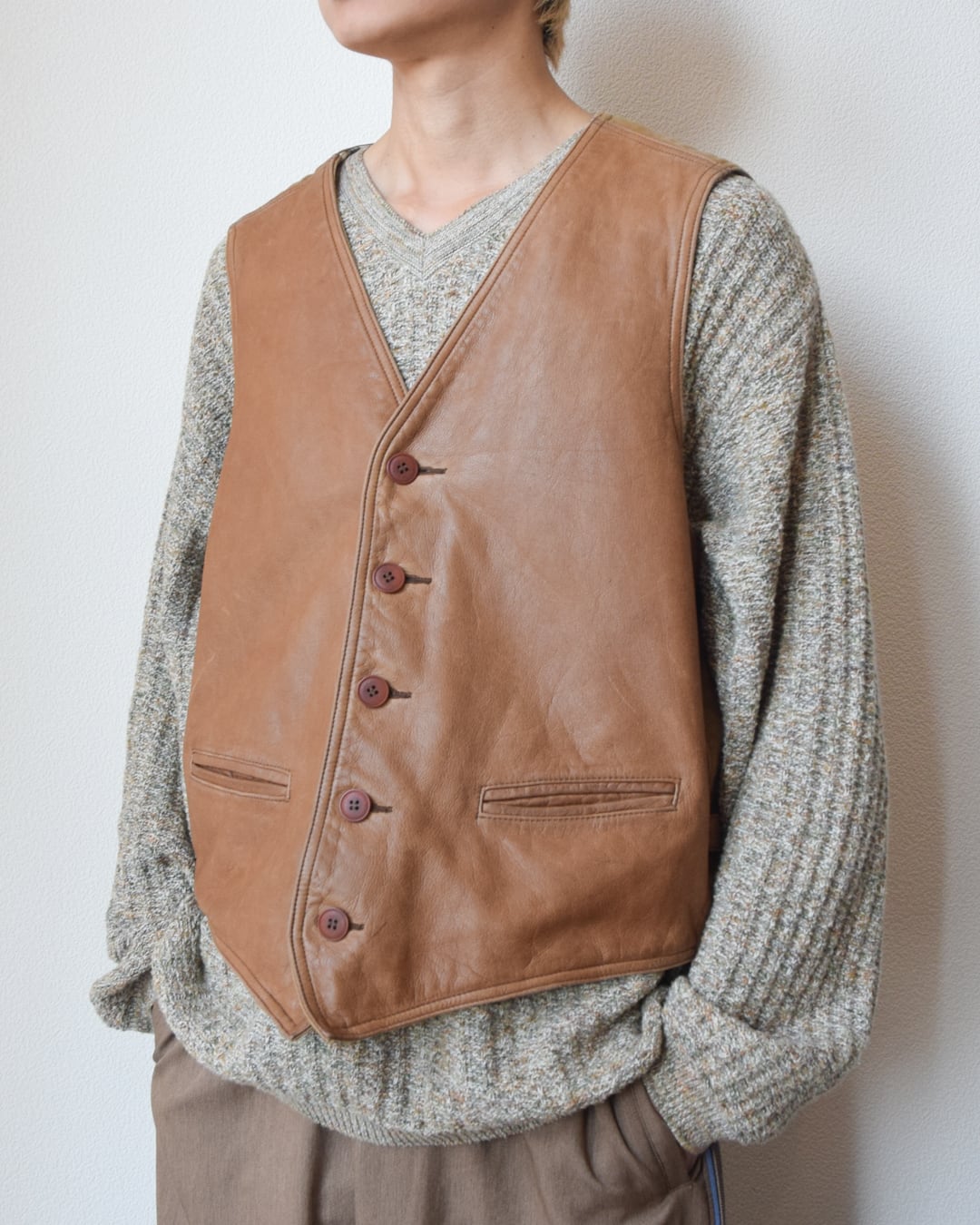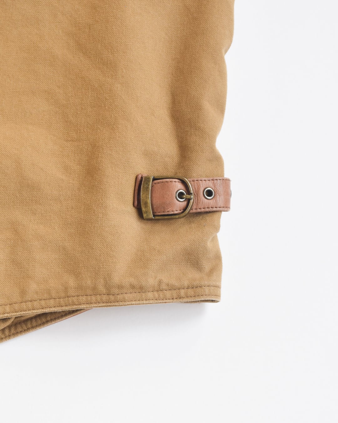 表面はレザー、裏面はコットンキャンバス生地になったベスト。