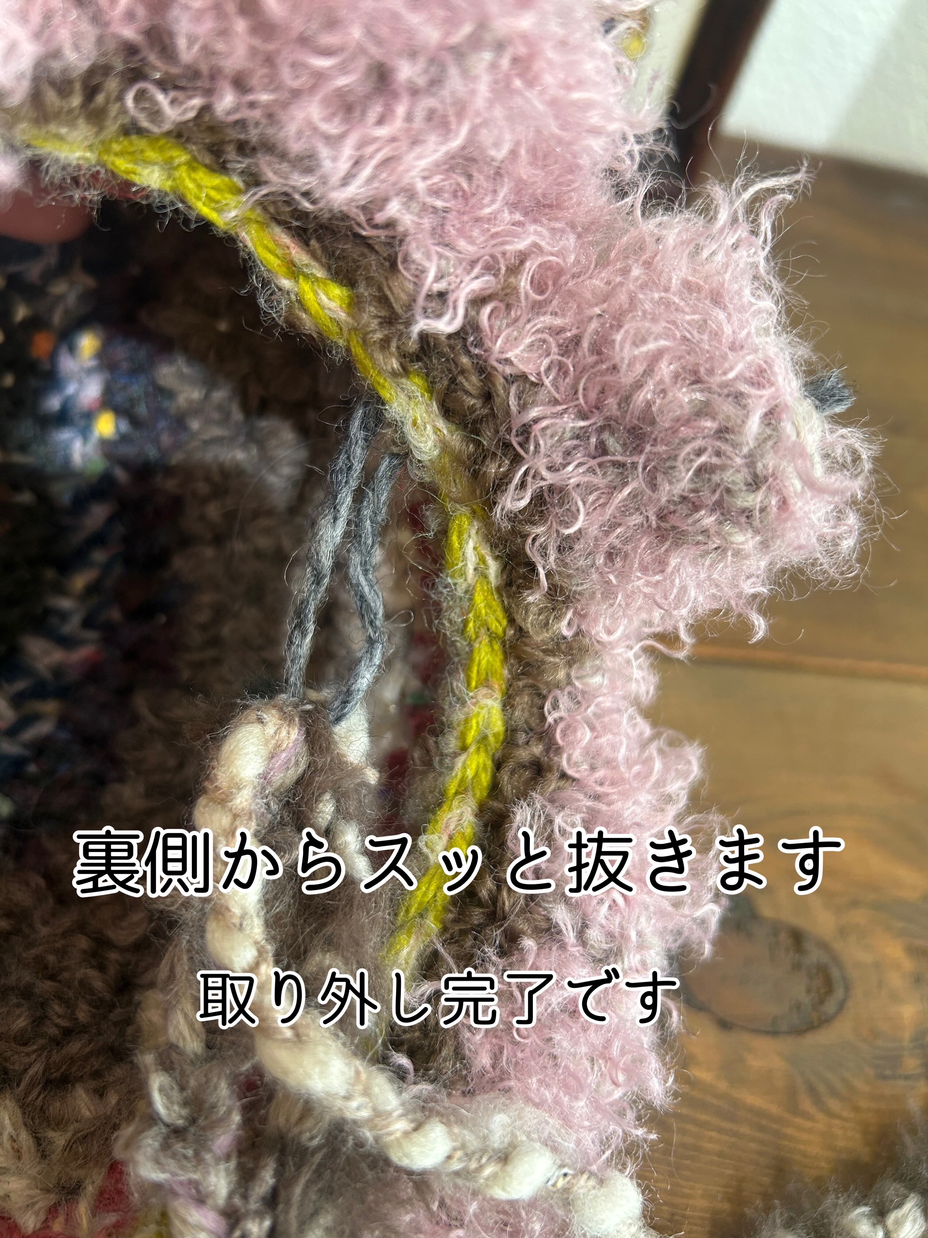 ひとつひとつ丁寧に編んでおりますが、手編みの為歪みやほつれ等生じる場合がございますのであらかじめご了承ください。
