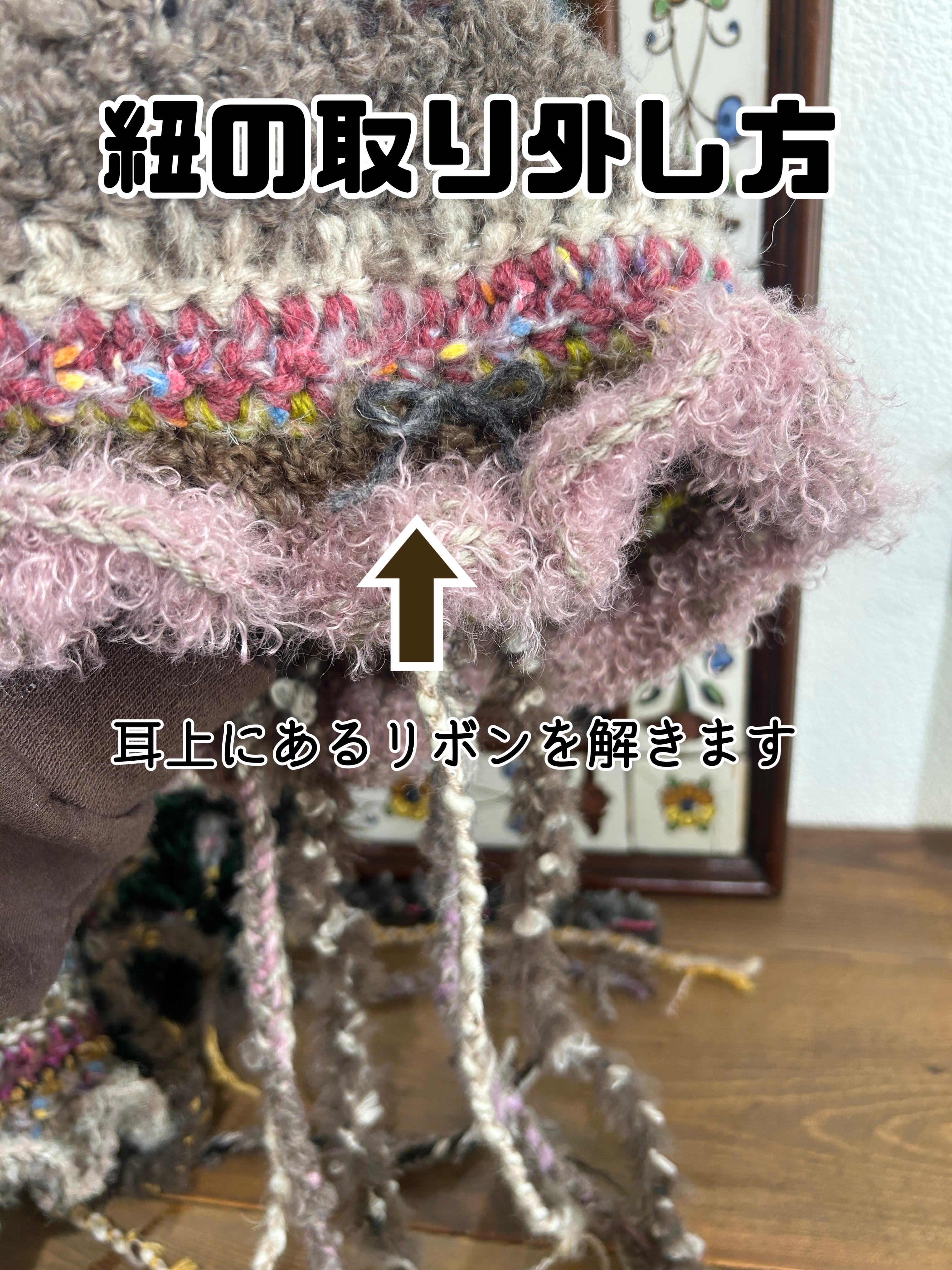 紐部分は取り外しができるようにしているので、付けたり外したり、お好みで楽しんで下さい★