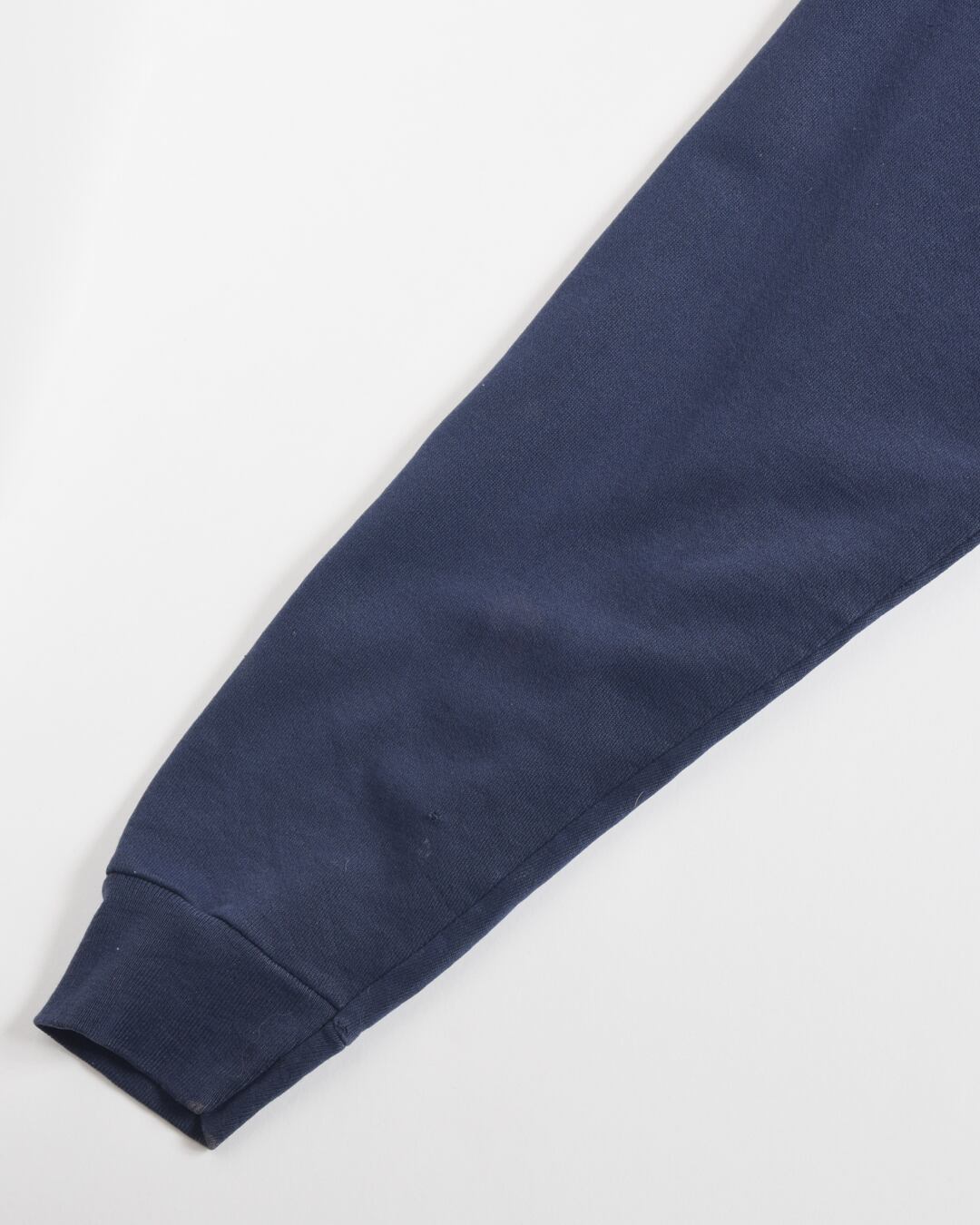 ネイビーのボディにホワイトのプリントがクリーンな印象を持たせつつ、ダメージや汚れが良い味を出しています。