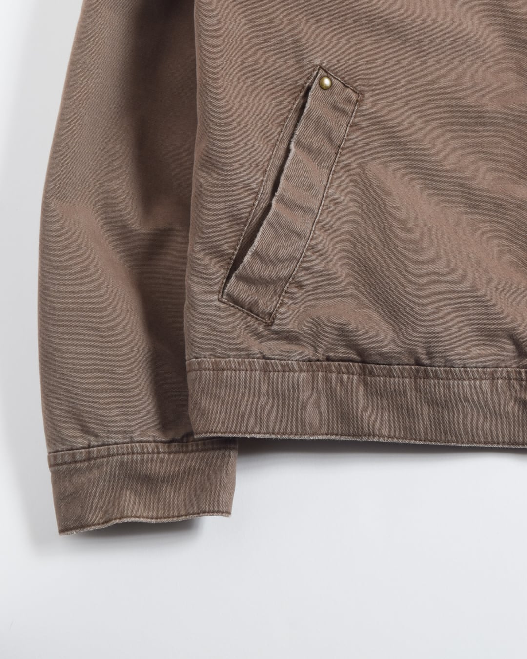表地はくすんだブラウンでダック地のような生地になっており、裏地はチェック柄になっています。