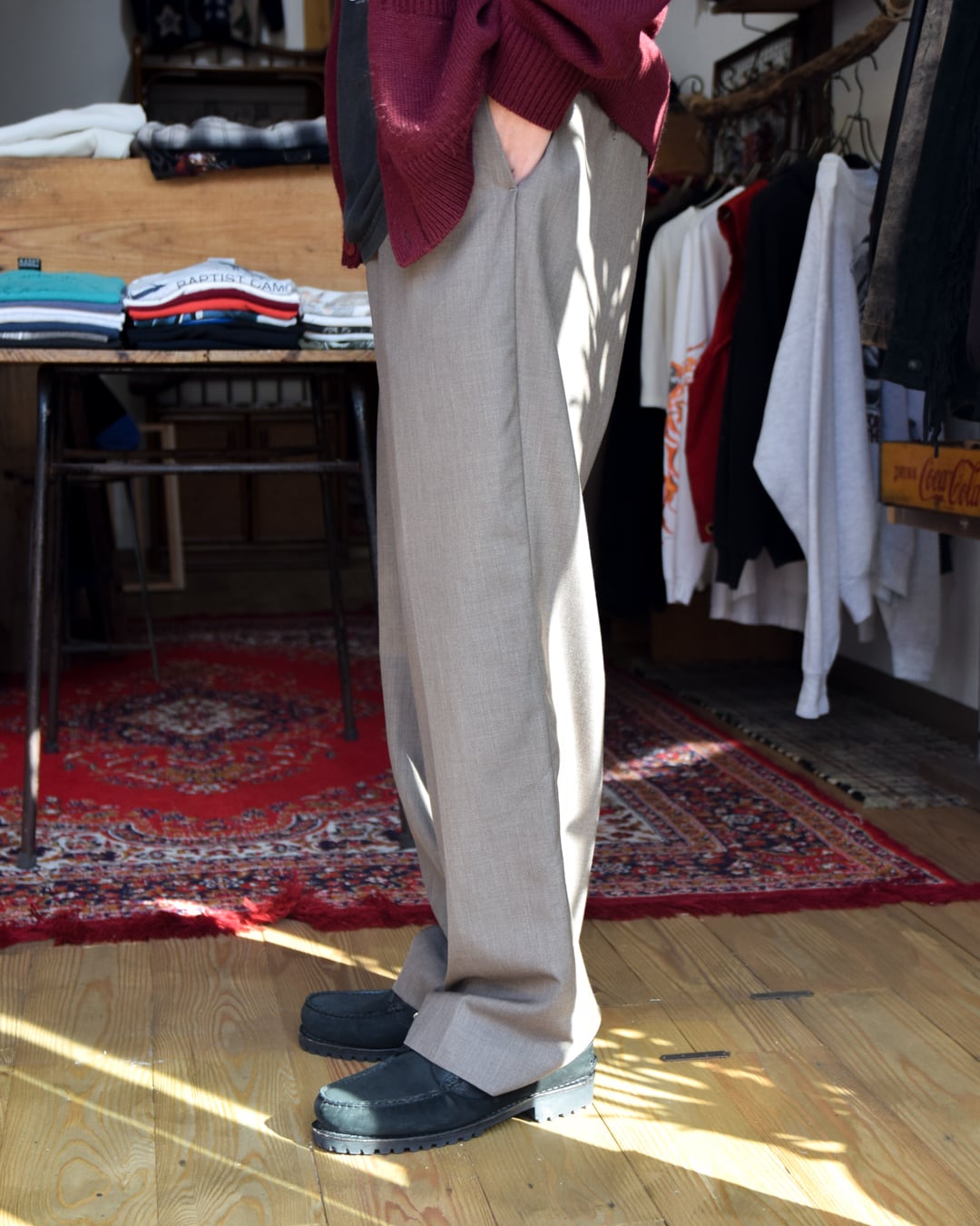 ポリ×レーヨン素材で独特のドレープ感があり、ドレッシーな印象の中にリラックス感も兼ね備えた一本です。