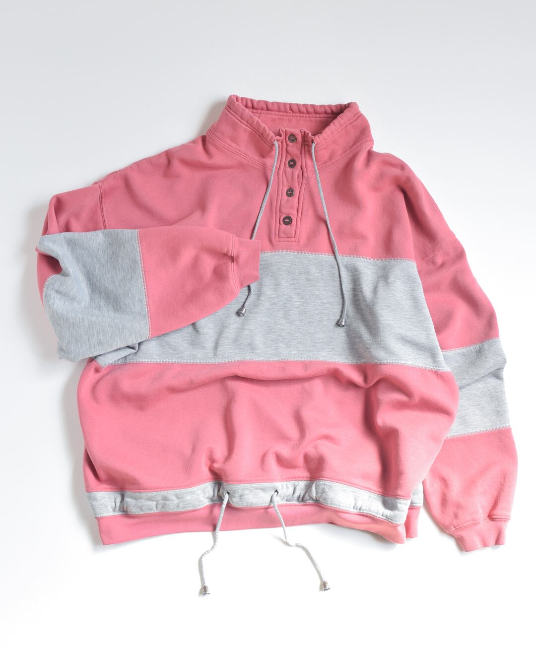 首元がボタンで開閉出来るようになっていたり、首元と裾がドローコードで調整出来るようになっていたりと、着方にバリエーションがあるスウェットです◎