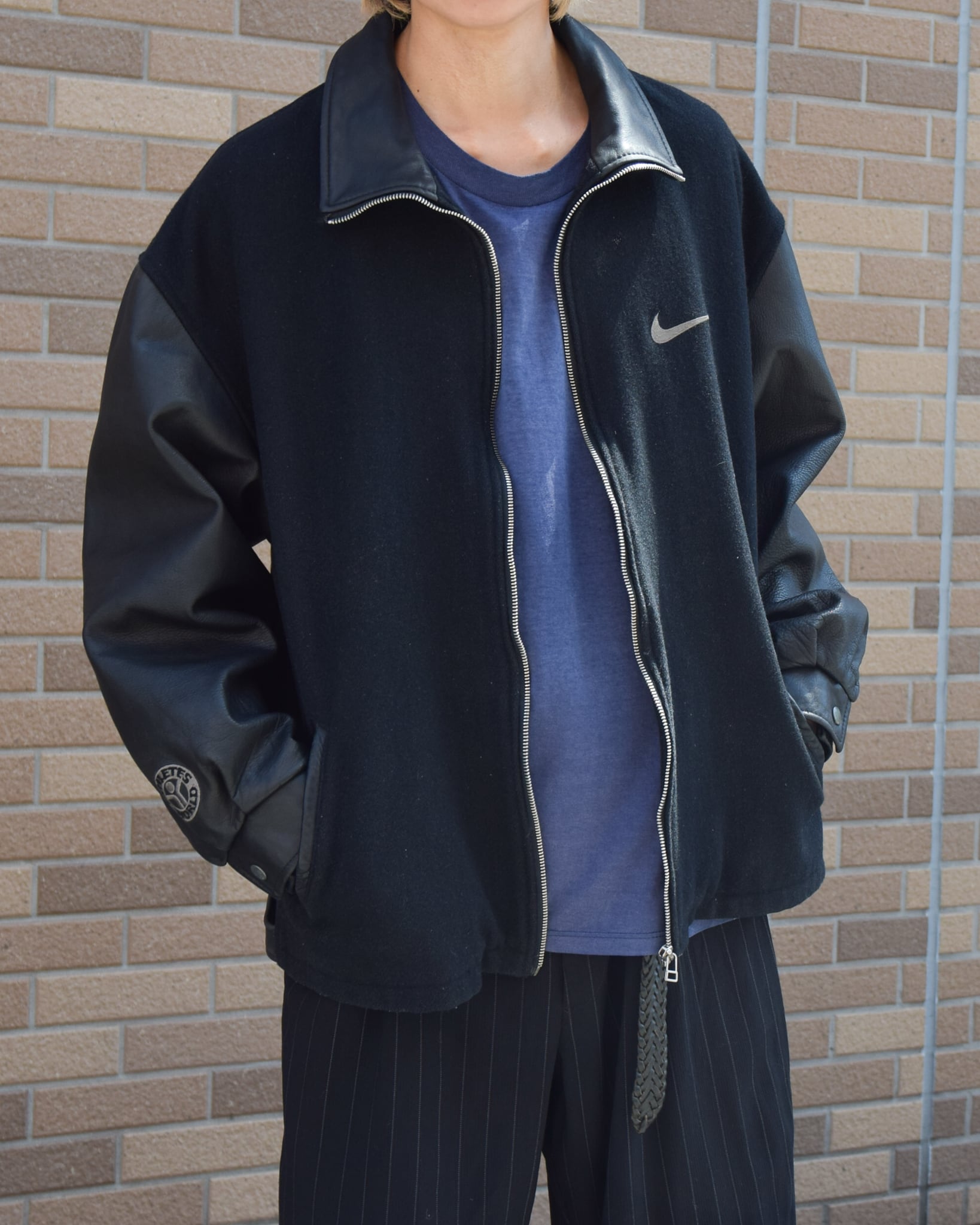 90's "NIKE" Wool × Leather Varsity Jacket