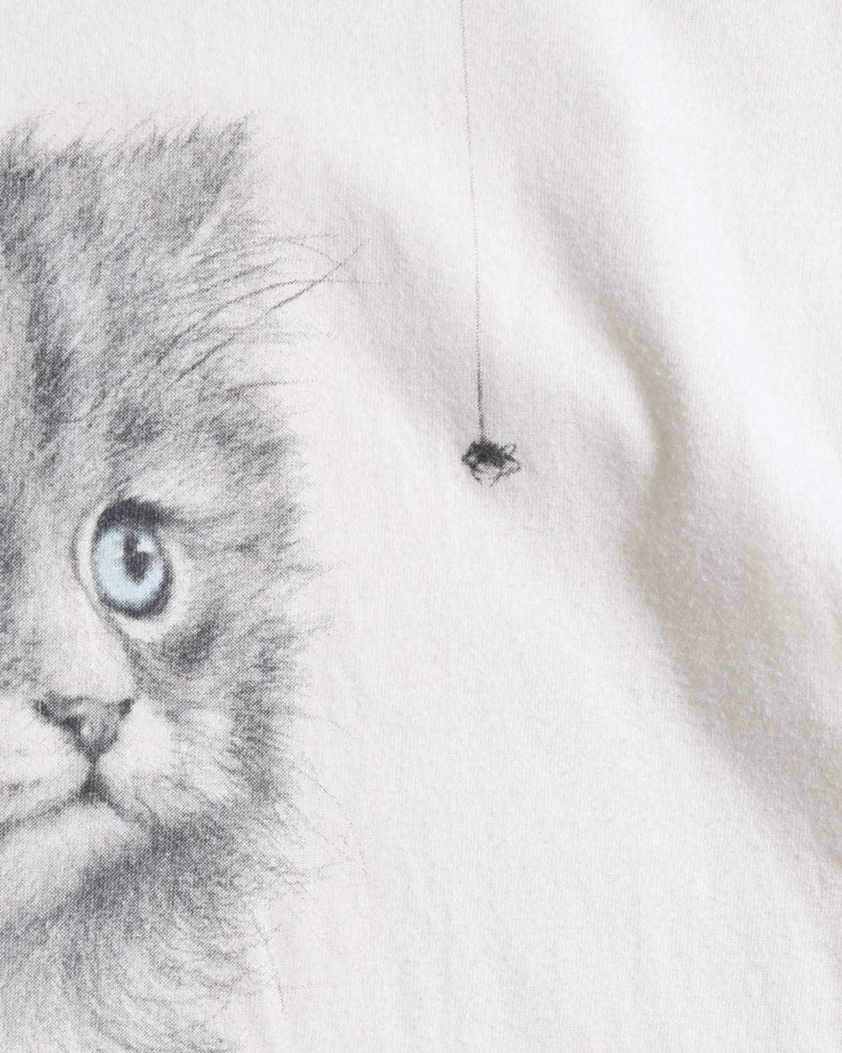 猫が蜘蛛を見つめる絵がプリントされたデザインのTシャツ。