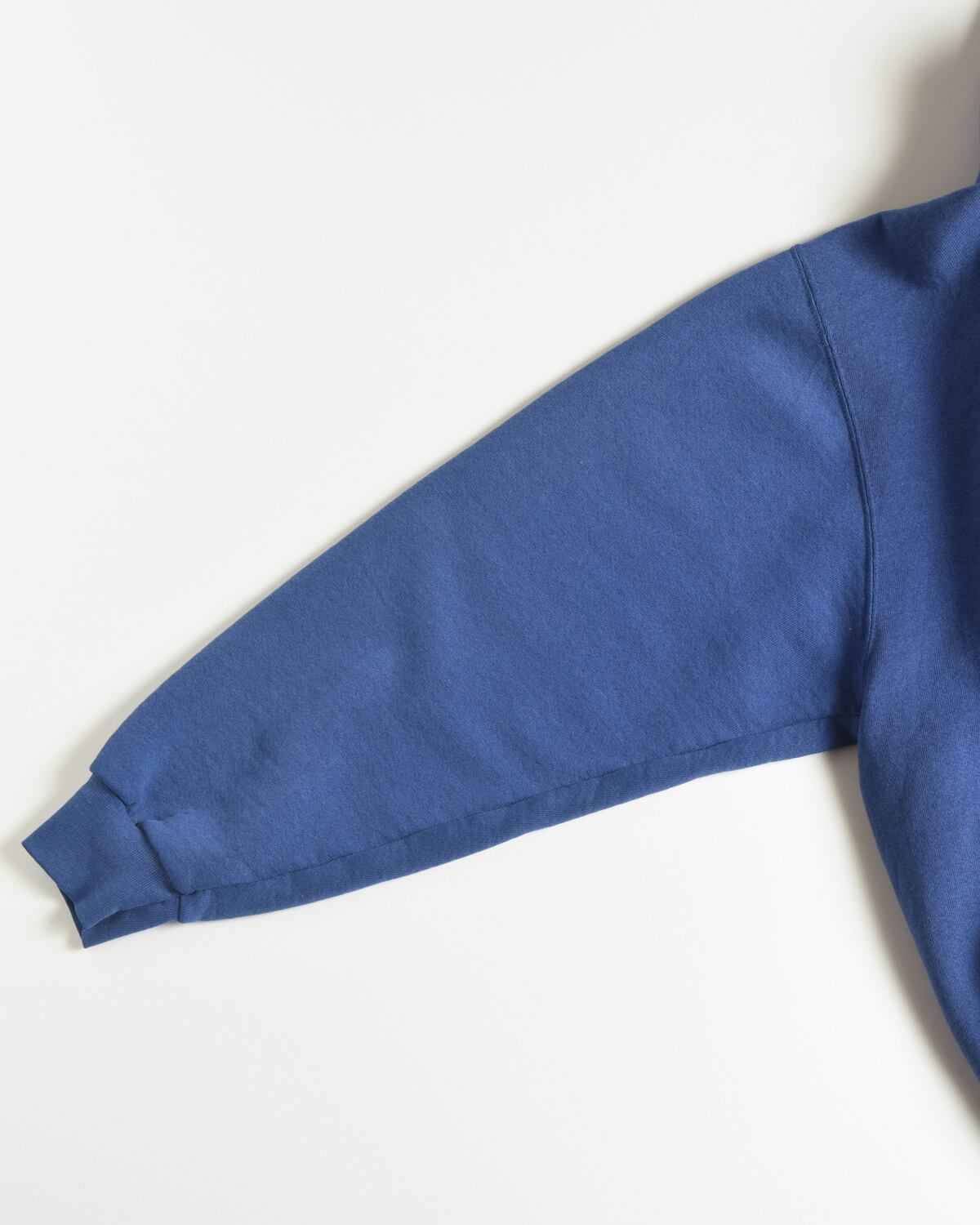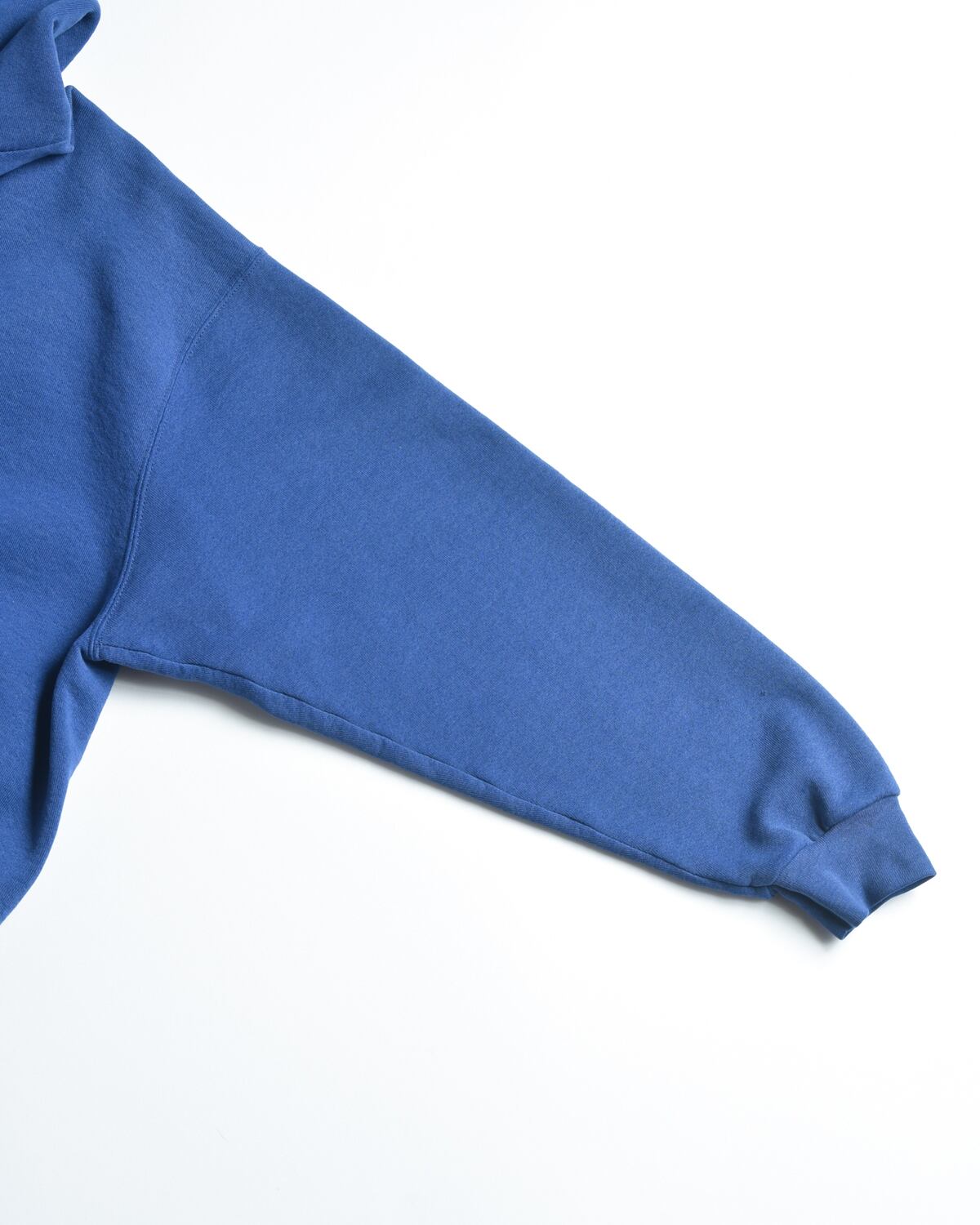 落ち着いたトーンのブルーで、一着でもレイヤードでも使えます。